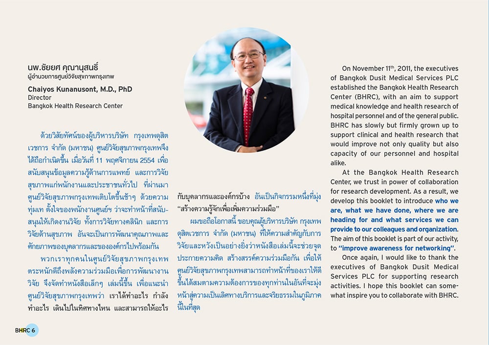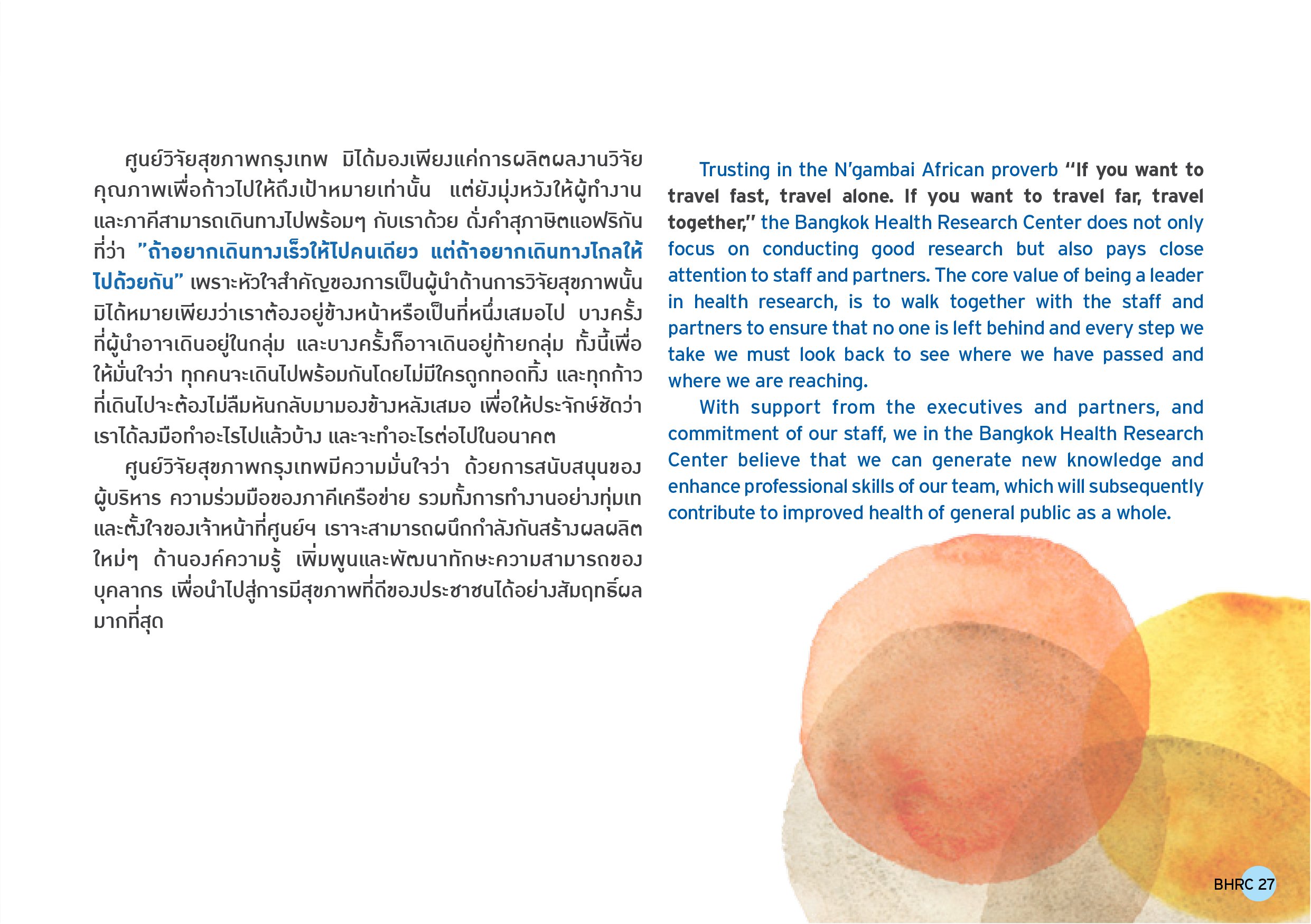 ศูนย์วิจัยสุขภาพกรุงเทพเป็นผู้นำด้านการวิจัยสุขภาพในเอเซียตะวันออกเฉียงใต้ด้วยกระบวนการและผลงานที่อยู่ในมาตรฐานวิชาการและจริยธรรม
